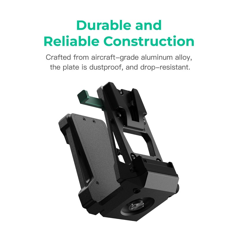 - The V-Lock adapter is made of aluminum alloy, which makes it both durable and lightweight. With a weight of just 293 g (10.35 oz), it adds very little to the overall weight of a camera package, ensuring easy operation and good balance