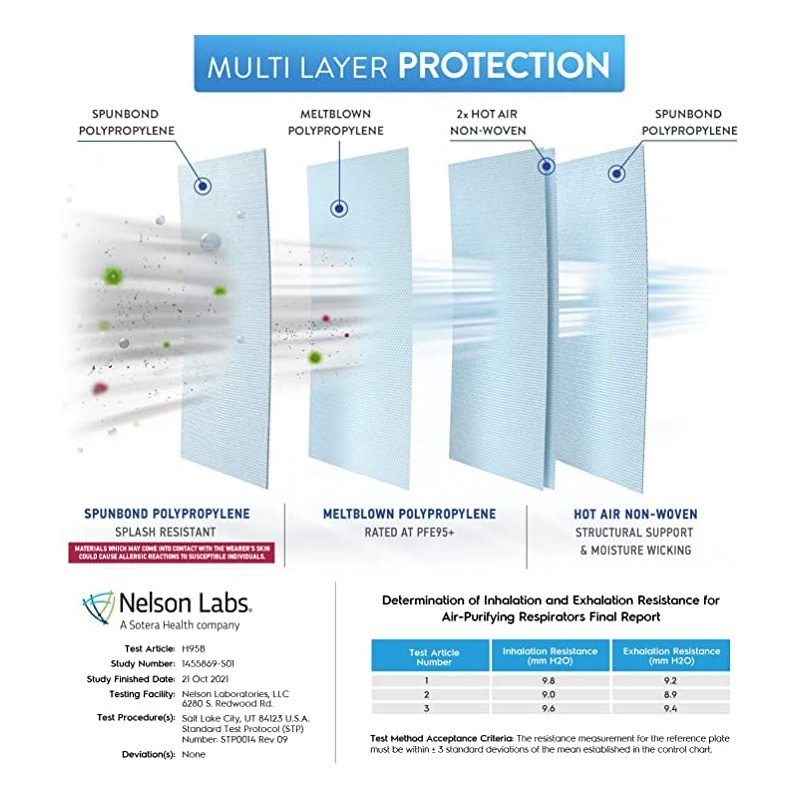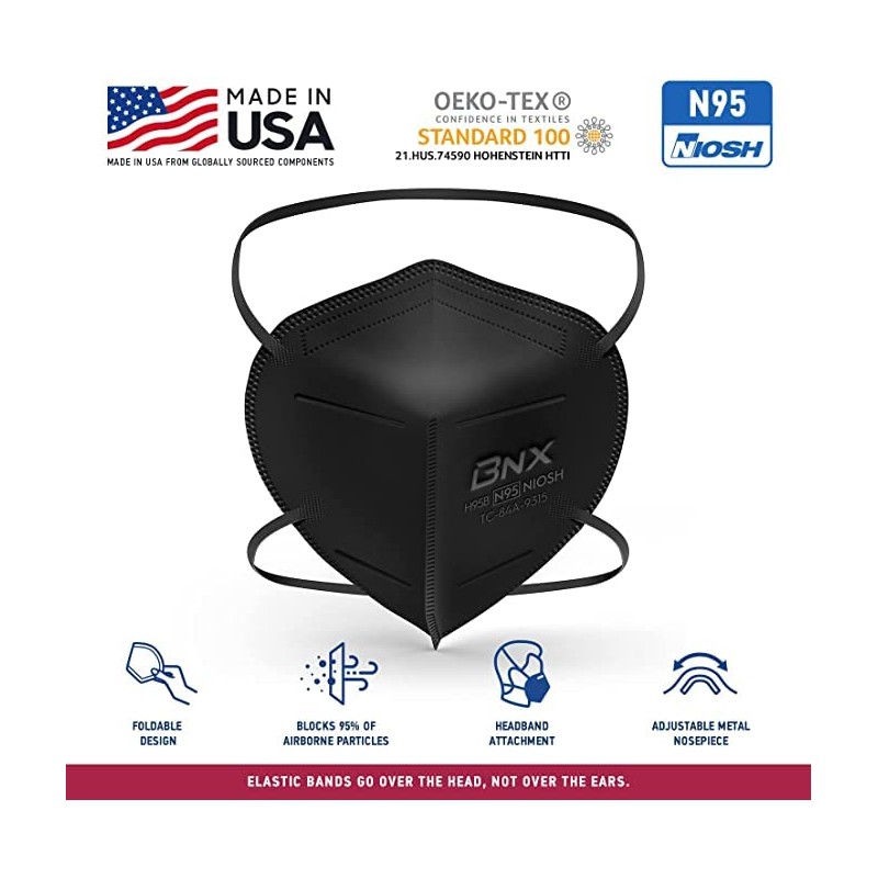 - Superior Protection & Breathability - BNX’s 5-layer filtration technology provides maximum protection, comfort and breathability. The active filter layer of these N95 masks is composed of ultra-high grade electrostatically charged meltblown polypropylene. Extremely breathable up to 50%+ more breathable than minimum requirement.