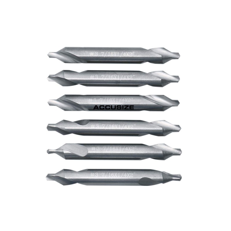 Accusize Industrial Tools 0.109 Inch x 2 Inch x 1/4 Inch Solid Carbide Center Drill Bits, No.3, 60 Deg, 585-1092