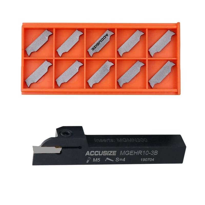 Accusize Industrial Tools 5/8'' x 5/8" Cut-Off Holder, Parting Tool, Mgehr10-3b of 2387-2005 with 10 Carbide Inserts for Cutting Aluminum