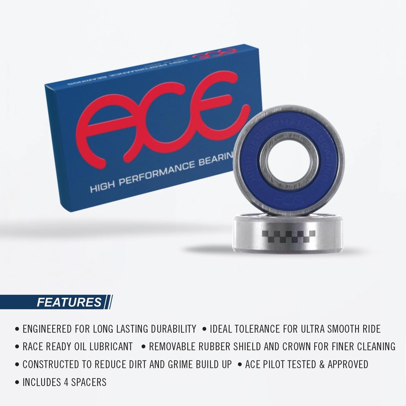 - PRECISION HIGH-SPEED BEARINGS FOR SKATEBOARDING | Ace Bearings are built with premium-grade materials, offering superior speed and performance for all skateboarding styles, including street, park, bowl, and vert skating.