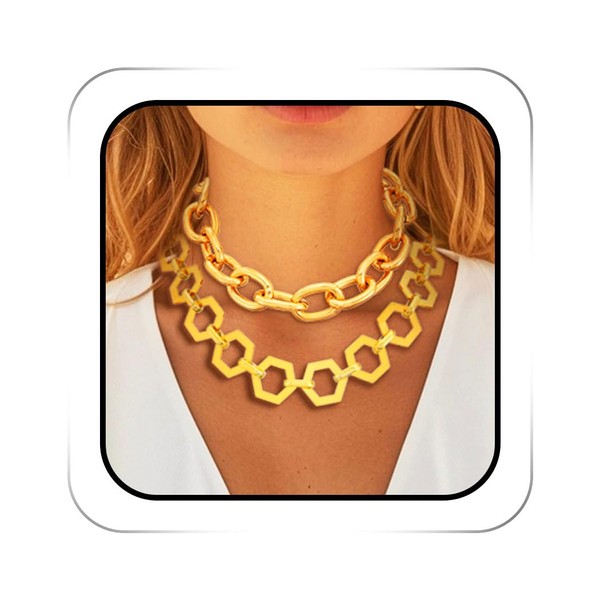 - Chunky gold necklace can be paired with a basic T-shirt for a casual look or paired with a suit for an evening party to add that extra touch of glamor and personality.