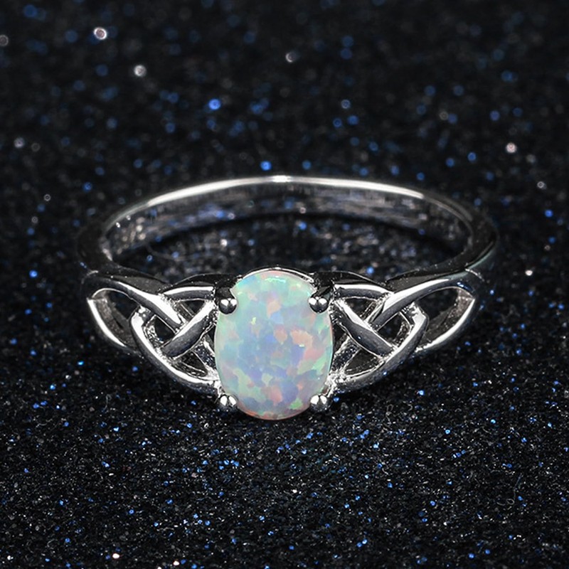 ACEFEEL Oval Lab Created White Opal Celtic Knot 925 Sterling Silver Band Ring (8.5)