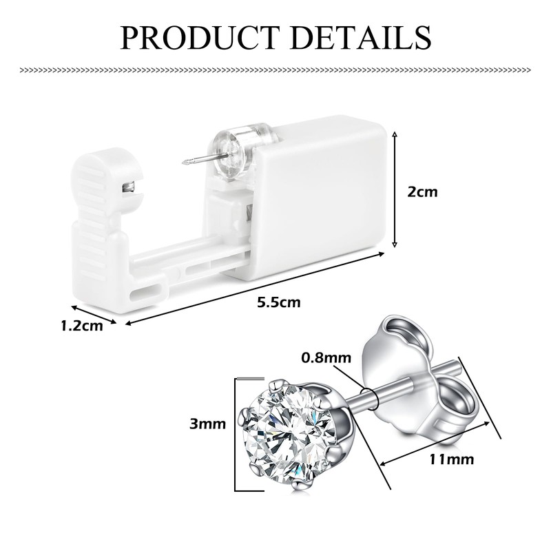 - Easy to use: this ear piercing kit is very easy to use. After opening the packaging, clean your hands and ears, mark the position on the ear where you want to wear the earrings, aim and press firmly, and you are done.