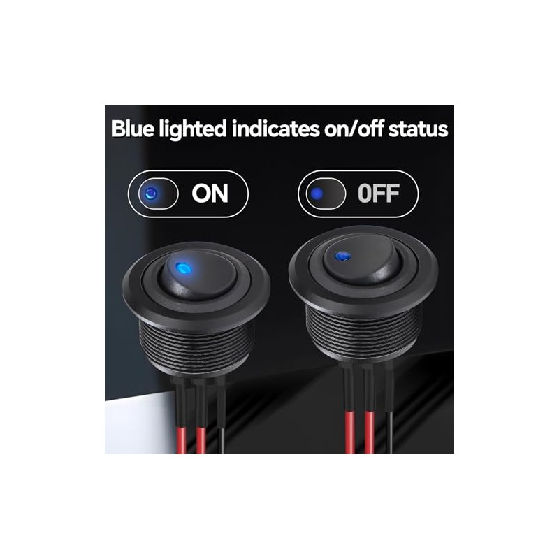 - 20A Current Rated Switch: This SPST switch comes with UL listed 14 AWG wire leads for 12V or 24V circuit on/off switching, supports Max 240 watts power totally, 20A@12VDC 10A@24VDC