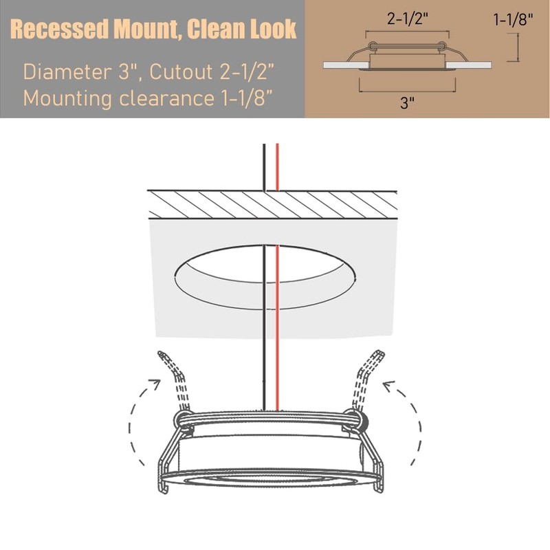 • Sturdy Flush Mount - Drill a 2-1/4” cutout, vibration-proof recessed mount with spring clips, light fixture sits flush with ceiling, clean look after installation