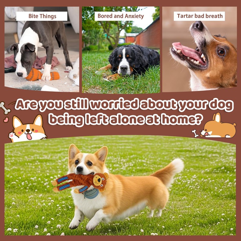 - 【To Keep Them Busy】: Dog chew toy’s rope and squeak design add daily entertainment to your pet, keep your dog active, relieve their depression, boredom and anxiety when they are alone. it can also reduce the chance of pets chewing sofas, shoes, etc., keeping your home clean and tidy.