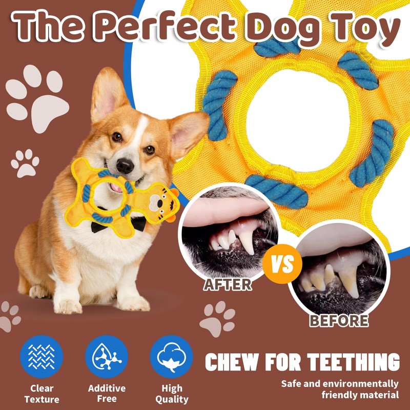- 【Interactive Dog Rope Toys】: Dog chew toy is designed with a strong bite rope, which is suitable for pets to bite and pull. It can meet the pet's biting needs while playing, preventing damage to furniture and other items. It is also a good tool, the fuzz on the surface will rub the puppy's teeth, which can help the dog clean teeth promote dental health.