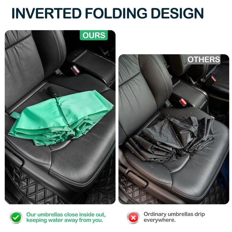 - Innovative Inverted Folding Design: Say goodbye to the hassle of water dripping inside your car or home! Our umbrella's unique inverted folding design keeps the wet part inside, ensuring you stay dry all day long.