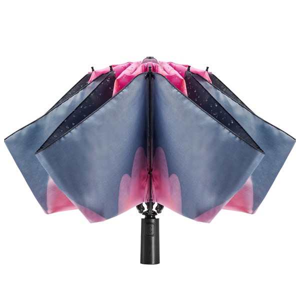 ACEIken Windproof Automatic Umbrella - Compact, Foldable Pocket Umbrella for Men and Women, 8 Ribs, Waterproof and Windproof, Ideal for Travel and Everyday Use, 106/116 cm Span, Pink flower