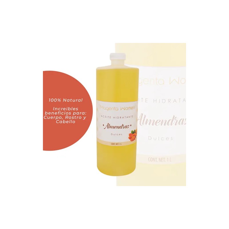 1 de aceite de almendras dulces virgen, envasado en frasco de plástico y tapa rosca, de la marca Magenta Women