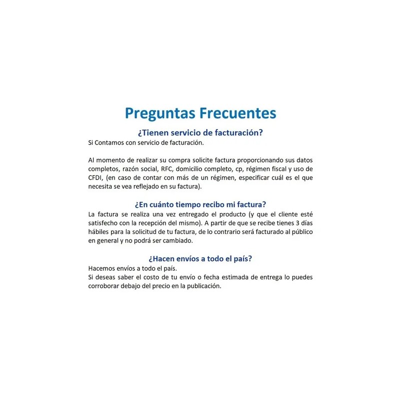 R: Ofrecemos factura en digital, puedes mandarnos un mensaje después de hacer el pedido si la necesitas.