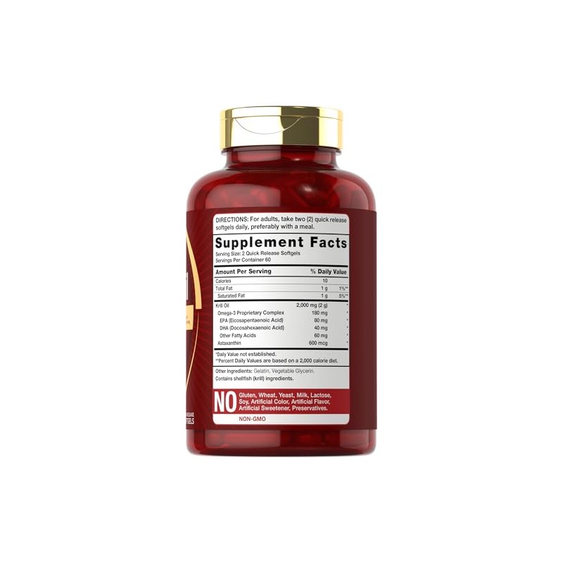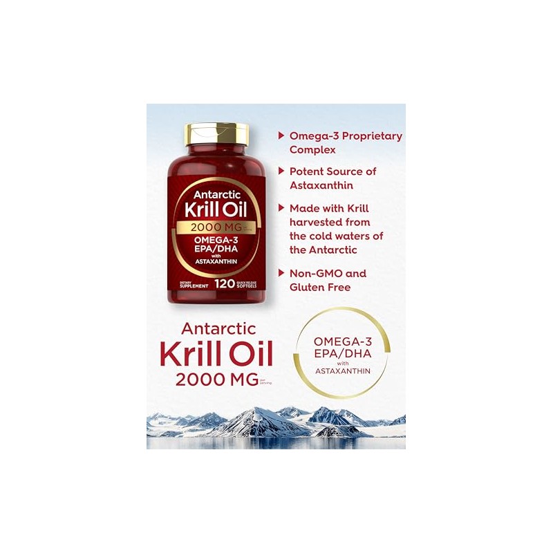 Aceite de krill antrtico 2000 mg 120 cpsulas blandas Omega-3 EPA, DHA, con suplemento de astaxantina procedente de Krill rojo mxima fuerza probado