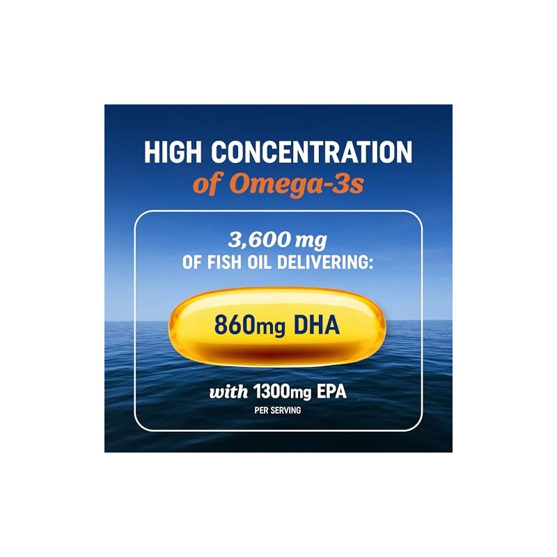 Aceite de Pescado Omega 3 Triple Fuerza 3600 mg Ms de 2100 mg cidos Grasos Omega-3 EPA y DHA (1300 860) Suplemento Alimenticio Premium, Frmula Sin