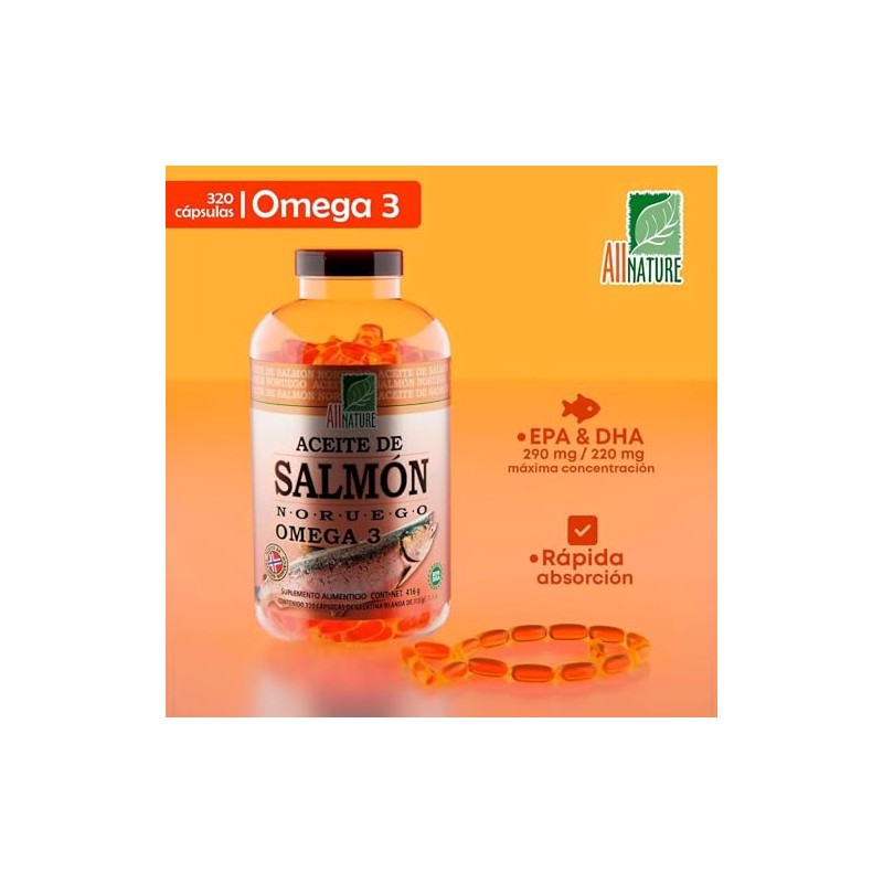 Aceite De Salmon Noruego Omega 3 All Nature 320 Cpsulas - Producto Original de Alta Calidad, Entrega Rápida y Segura, Garantía Incluida