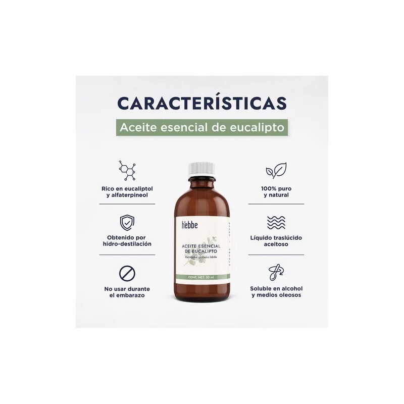 Aceite Esencial Eucalipto Puro, Aromaterapia, Spa, Hebbe 50ml