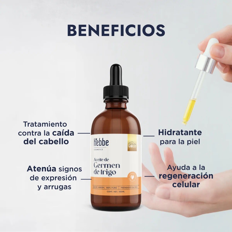 ¡Rejuvenece y revitaliza tu belleza con el Aceite de Germen de Trigo Puro de Hebbe! El elixir esencial para una piel y un cabello protegidos, reparados y visiblemente más saludables, radiantes y llenos de vitalidad. 🌟💚