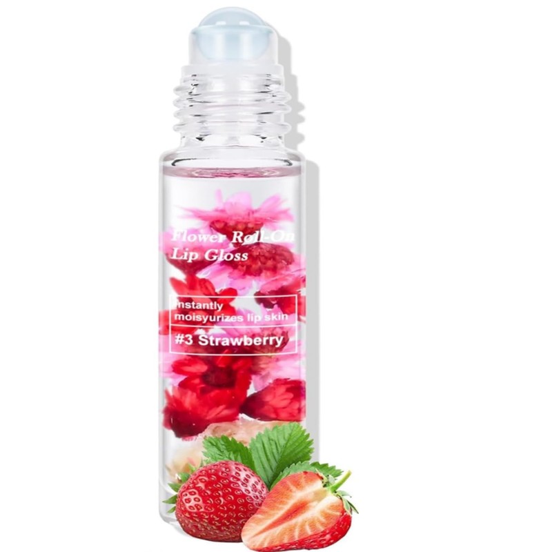 Aceite Labial Rollerball, Bálsamo Labial Transparente, Aceite Labial con Diseño de Bola Rodante Transparente, Bálsamo Labial Hidratante Nutritivo para Labios Secos y Agrietados (#3 Strawberry, M)