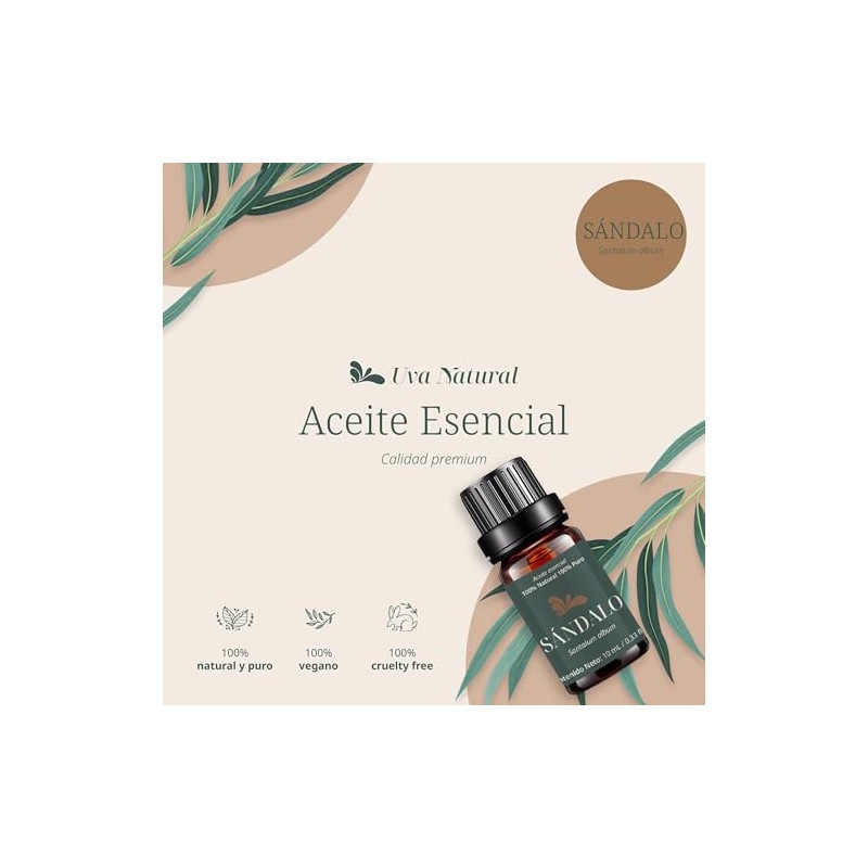 Aceites Esenciales de Sandalo Aromaterapia - Natural 100% de Aceite Esencial Natural Conjunto de Difusores y Humidificadores con Caja de Regalo Exquisita (UVa Natural, 10 ML) (Sandalo)