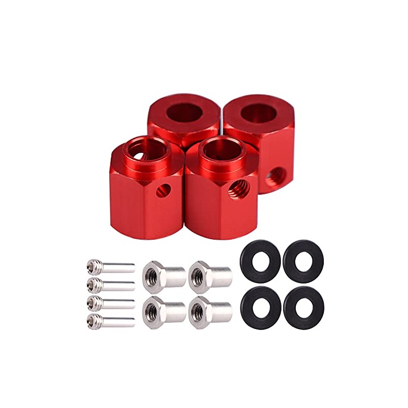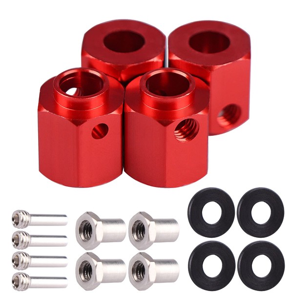 Acekeeps Aluminum Thicken 12mm Hex Wheel Hubs Adapters w/Spacers Upgrades Parts for 1/10 Traxxas TRX-4 TRX-6 RC Crawler (Red, 12mm)
