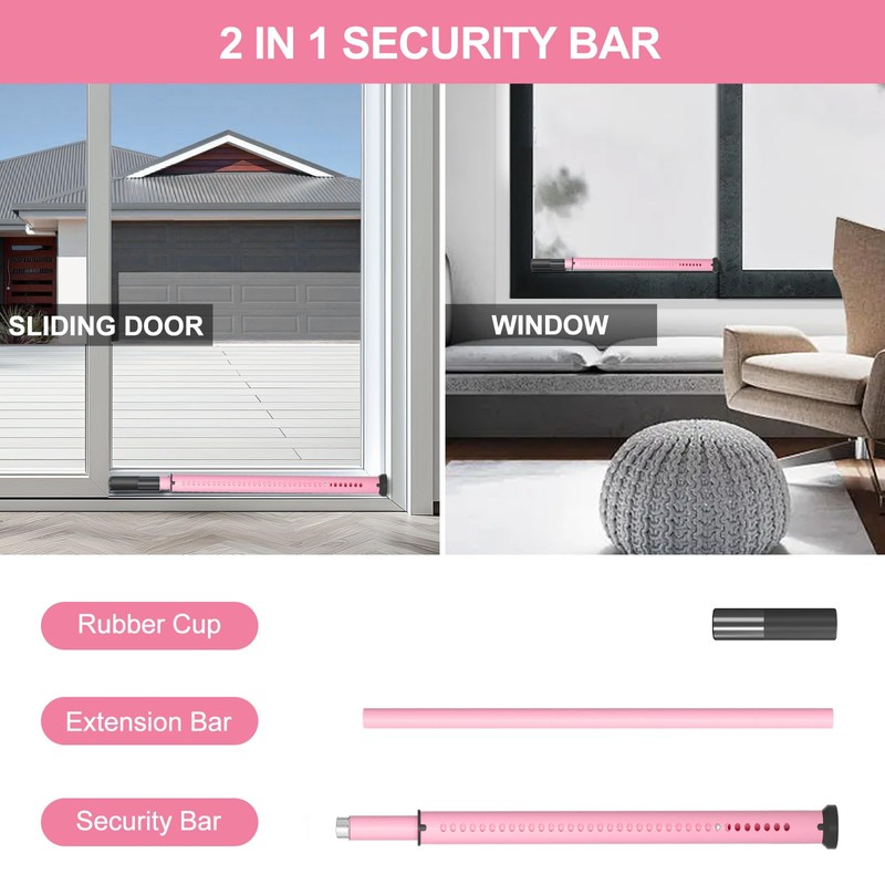 AceMining Sliding Door Security Bar,Heavy Duty Sliding Patio Door Lock Bar, 20-50inch Adjustable Multi-use Window Security Bars, Sliding Door Stopper,Pink,1Pack