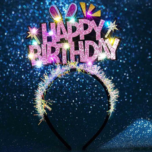 Aceorna Light Up Birthday Headbands Pink LED Happy Birthday Hairbands Glowing Party Decorations Glitter Party Hair Accessories for Women