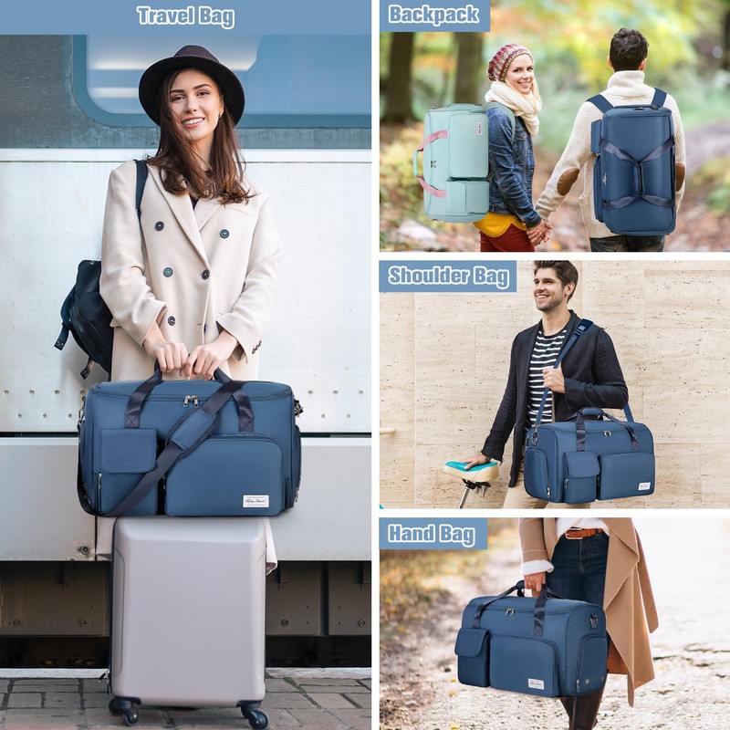 - 【4-in-1 Convertible Garment Bag】This versatile bag transforms into a handbag, shoulder bag, casual bag, or backpack. With various compartments, this garment travel bag can hold 3-5 suits or dresses, 2 pairs of shoes, ties, toiletries, cosmetics, and electronics. A specialized wet/ dry compartment is perfect for underwear, swimwear, towels, or post-workout clothes, ensuring everything stays organized.