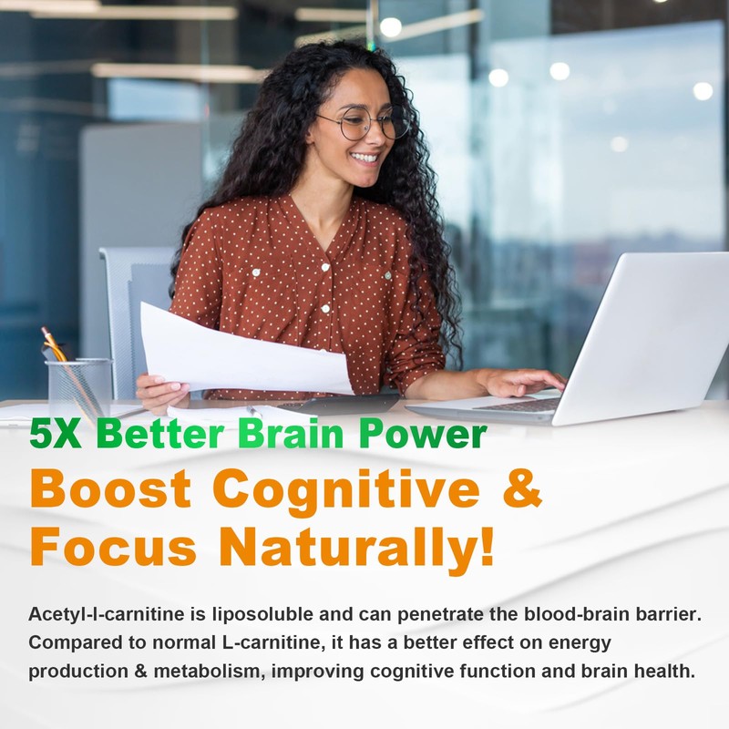- 【Enhance Brain Health & Cognition】 Acetyl L-Carnitine (ALCAR) improves cognition and memory by increasing brain acetylcholine levels. It crosses the brain barrier to enhance memory, concentration, and resist age-related cognitive decline, while also protecting brain health through mitochondrial support and antioxidant effects