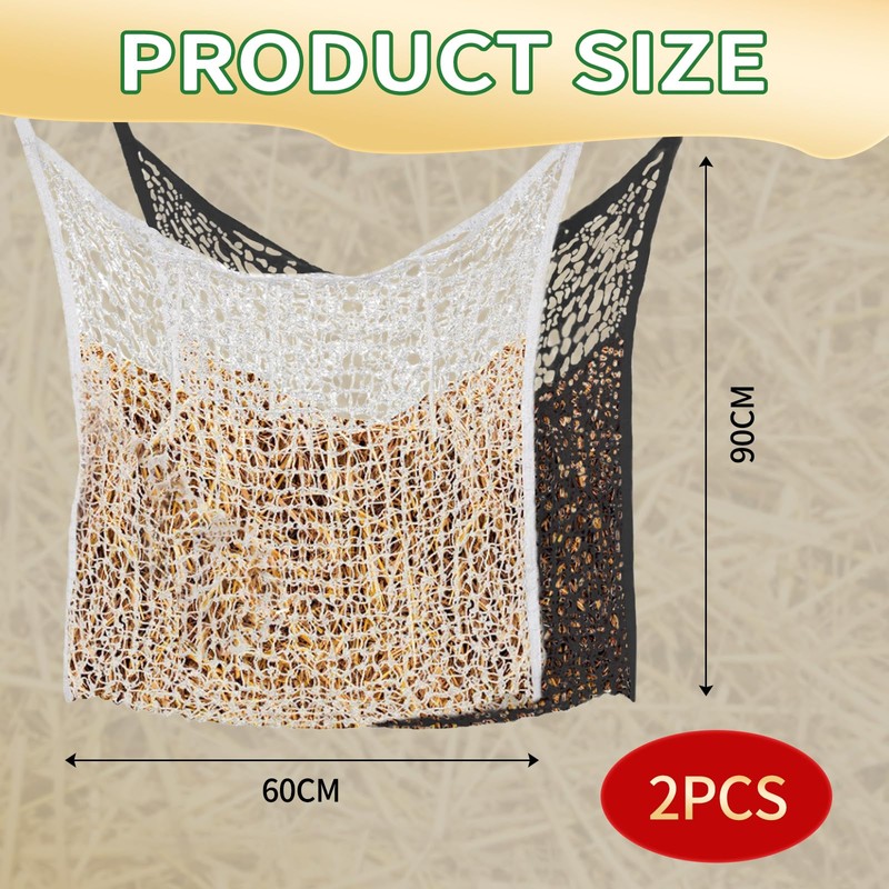 - There are totally 2 pieces of slow feed hay bags in the package, which are enough to meet your horse feeding needs, and are suitable for your daily use and replacement