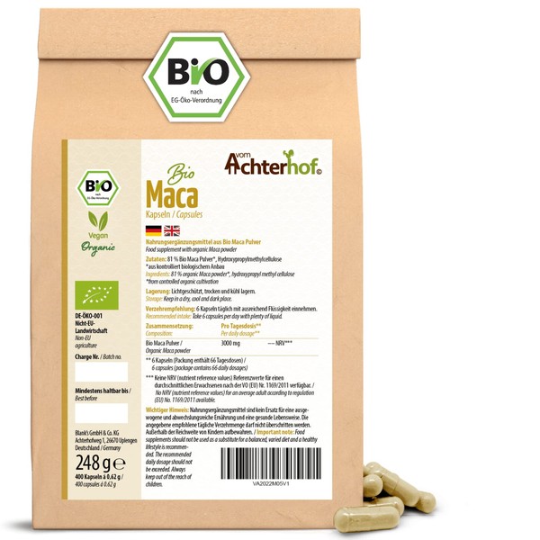 - Organic quality maca capsules from Achterhof are 100% organic. Our maca root powder comes from controlled organic cultivation.