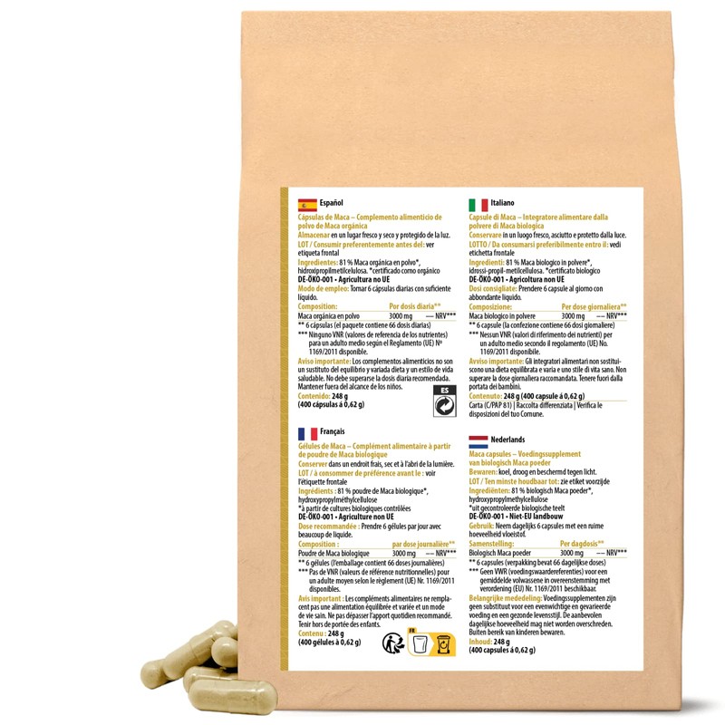 Achterhof Maca Capsules Organic Pack of 400 | Refill Pack | High Dose with 3000 mg Maca Powder per Daily Dose | Vegan | 100% Pure Maca Root from Peru