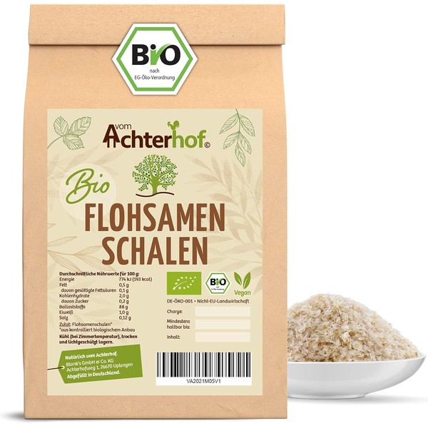 Achterhof Organic Psyllium Husks, 200 g, Rich in Fibre, the Ayurvedic Allrounder for Baking and Cooking, from Controlled Organic Cultivation, Highest Premium Quality
