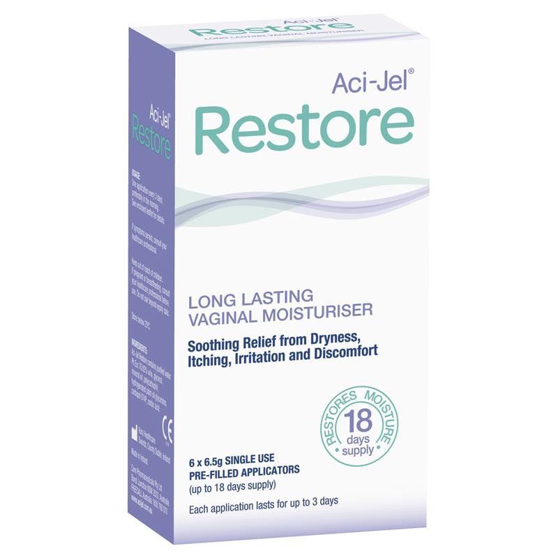 Aci-Jel Restore provides soothing relief from vaginal dryness, itching, irritation and discomfort.