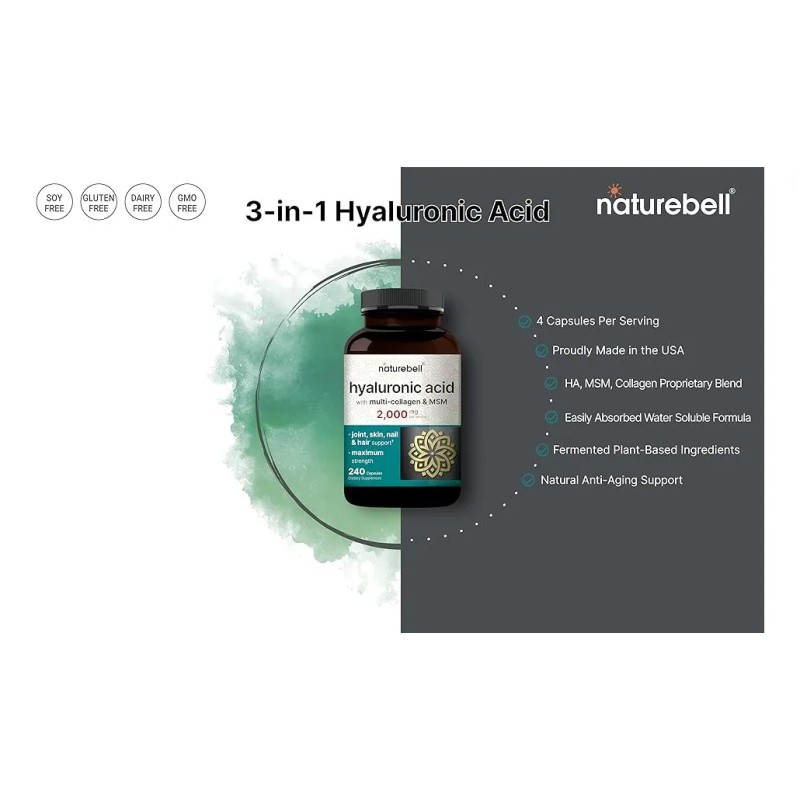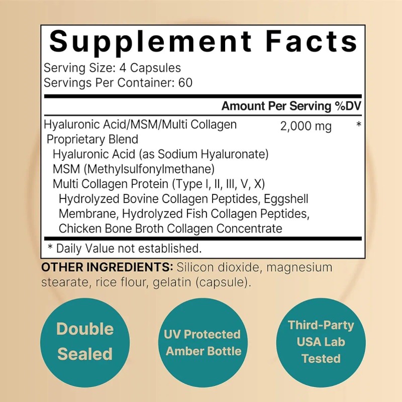 Ácido Hialuronico + Multi Colageno + Msm 2000 Mg 240 Caps. Sabor Sin Sabor