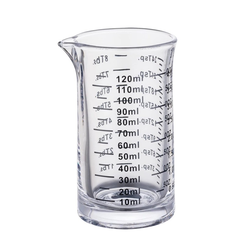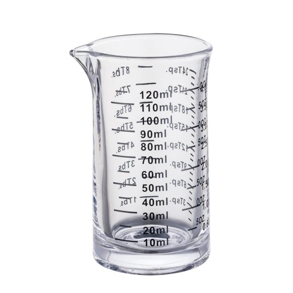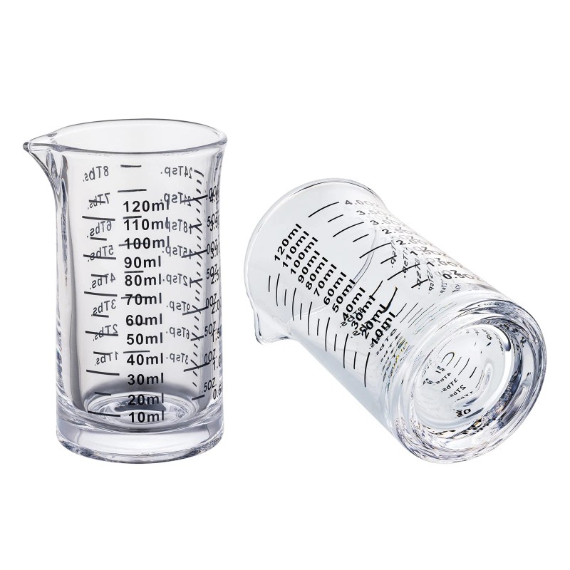 [CONVENIENT INDICATION]With line markings graduated in teaspoons, tablespoons, fluid ounces, and millilters all the way up to 4oz, this mini measuring glass has the information you're looking for