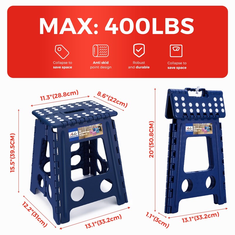ACKO Folding Step Stool Foldable 16 Inch 400 lbs Capacity, Plastic Stools for Adults and Kids, Collapsible Stools for Kitchen, Stepping Stool with Handle(Royal Blue)