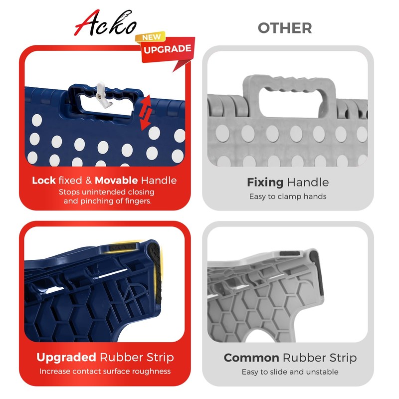 - Safety-Focused Design: Our lightweight folding step stool equipped with a non-slip surface, movable handle and the bottom corners are upgraded to black non-slip dot textured rubber straps to prevent slips and finger traps, improving a secure user experience.