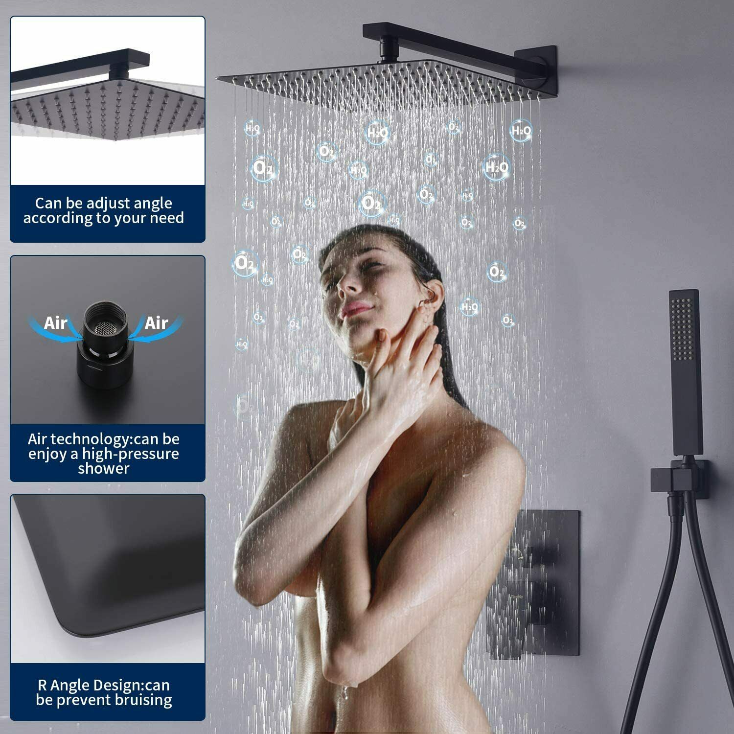 Ackwave Shower Faucet Set Rainfall Wall 12" Shower Head Combo Kit System w Mixer Valve