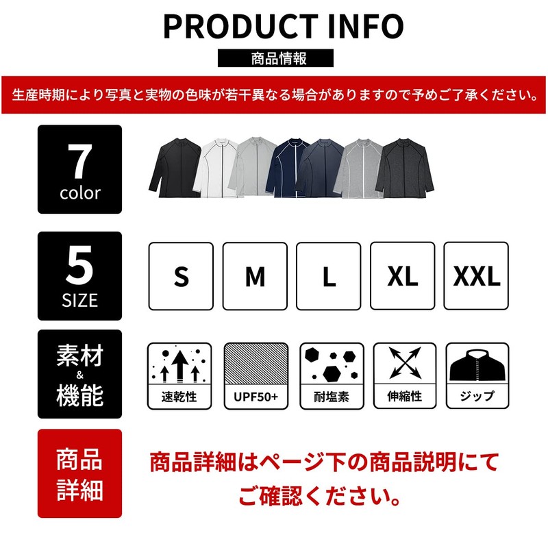 Aclice al21001 Men's Rash Guard, Long Sleeve, No Hood, Zip-up Swimsuit, UV Protection, Pool, Sea, Beach, Sauna, Stylish, Amphibious Use, Black