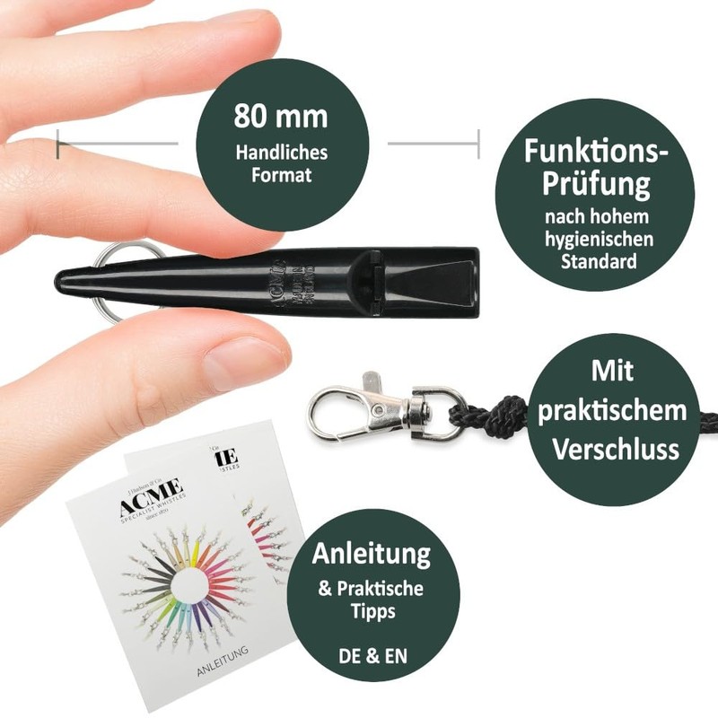 ACME Dog Whistle No. 211.5 + whistle band – for dog training, loud and wide range (black)