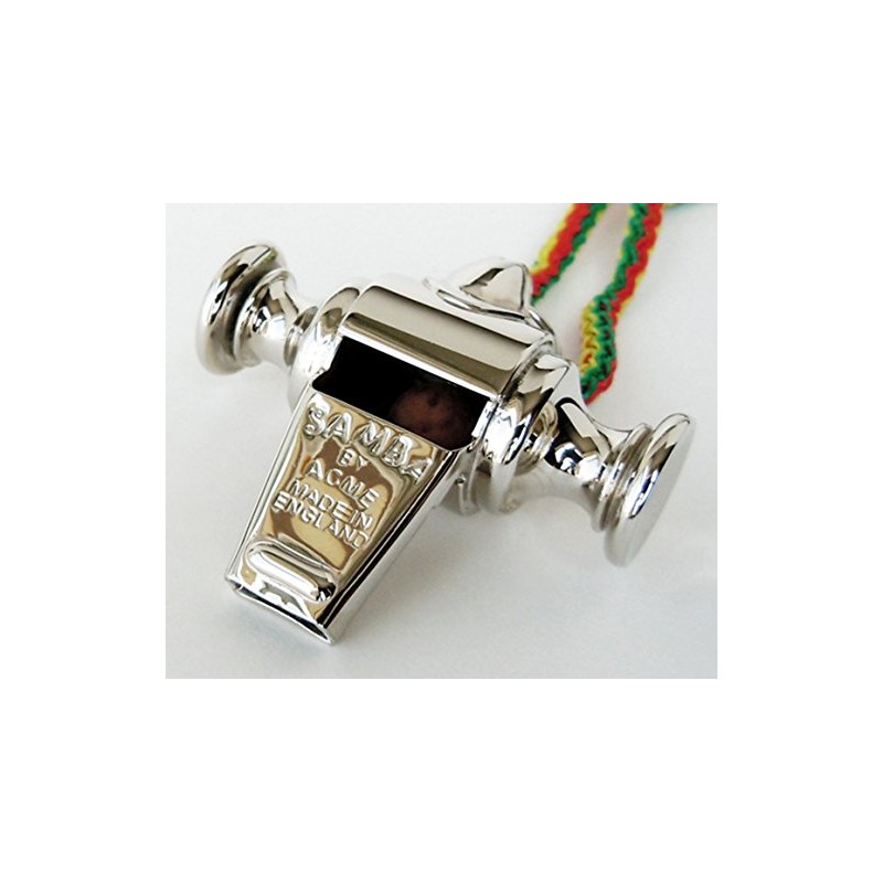 Solid brass professional model. The rolling Samba sound of Mardi Gras. Special tooth grips taken from the design of top referee whistles enables the whistle to be blown really hard and loud without being blown from the mouth. By placing the fingers on and off the stop holes a fantastic variety of sound can be created and controlled.