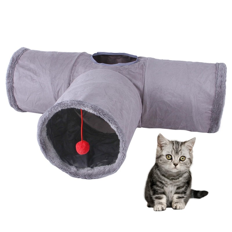 - 【Great Choice for Adventure】This tri-tunnel cat play tunnel stands 10.23 inches tall and offers three spacious paths for adult cats, kittens, and even puppies to chase, hide, and play. The three-way design enhances agility and adds a new level of fun, making it a perfect tunnel for indoor cats and other small pets like rabbits.