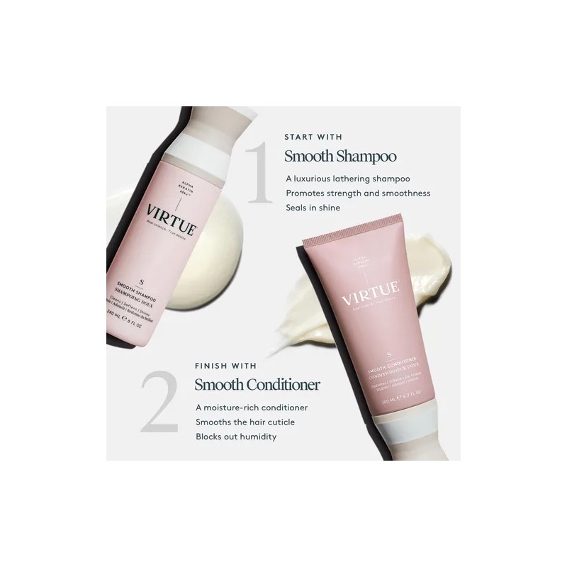 ¡Deslumbra con rizos suaves y sin frizz gracias al Acondicionador Virtue Smooth! 🌟 Enriquecido con la innovadora proteína Alpha Keratin 60ku®, este acondicionador hidrata profundamente, suaviza la cutícula capilar y combate el encrespamiento, dejando tu cabello manejable, brillante y saludable.