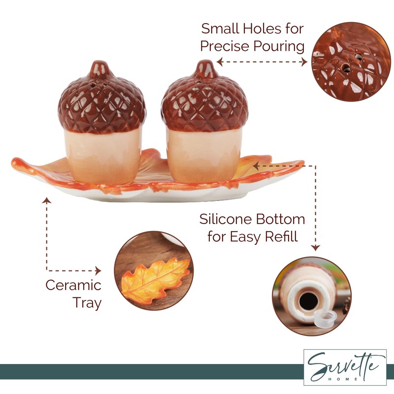 - FUN SALT & PEPPER SHAKER SETS these harvest ceramic themed salt and pepper shakers are great for collections, or daily kitchen use. Perfect for fall themed parties and kitchen décor.