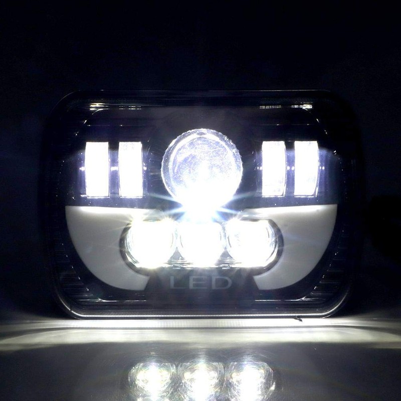 Acouto Faros delanteros LED faros universales para coche de 5x7 pulgadas luz cuadrada 90 W haz alto/bajo impermeable accesorio automotricesFaros 5x7in 90W Luz Ensambles automotrices alto/bajo00led