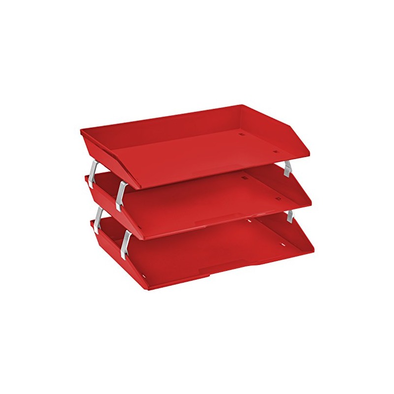 Acrimet Facility 3 Tier Letter Tray Side Load Plastic Desktop File Organizer (Solid Red Color)
