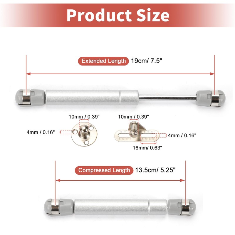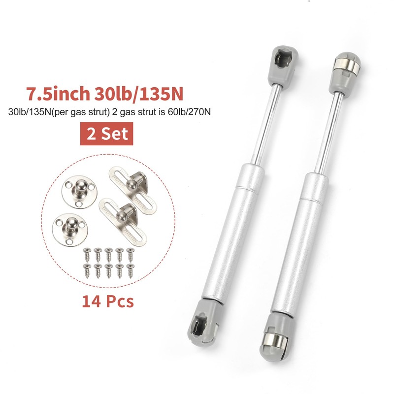 - Universal Fit: 2 Set Universal gas spring Extend Length: 7.5 inch, Compressed Length: 5.25 inch; Force: 30lbs/ 135N/ 13.5kg; Support Weight: between 26~34lbs (115~155N).