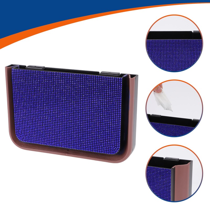 ACROPIX Car Trash Can Trash Bin Foldable 9.8" Length 3.1" Width 6.3" Height Blue Black Rhinestone Plastic