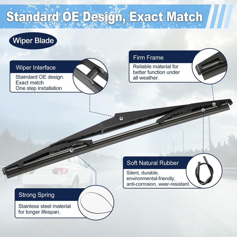 - [Package Includes] 1 Set Rear Windshield Wiper Blade and Arm (1 wiper blade, 1wiper arm).
