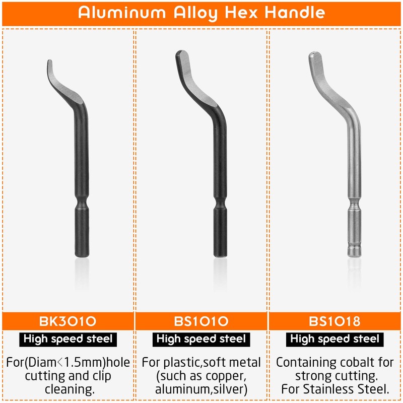 - It is easy to replace deburring cutter blade by compressing the mounting head. Pull the blade after you install it. Then the mounting head would reset.